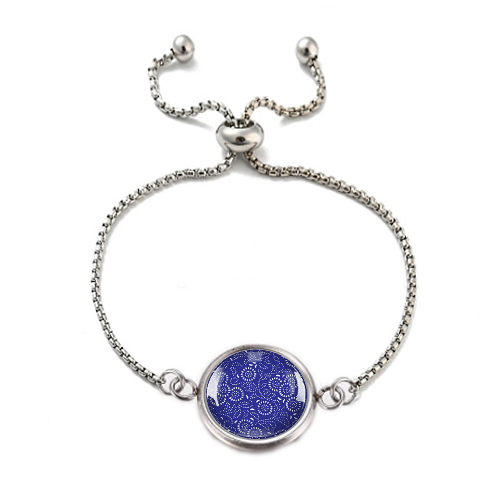 Magyar népművészeti motívumkincs felhasználásával készült nemesacél, orvosi fém karkötő, 12 mm átmérőjű üveglencsével, csúszózáras vagy kapcsos kivitelben.